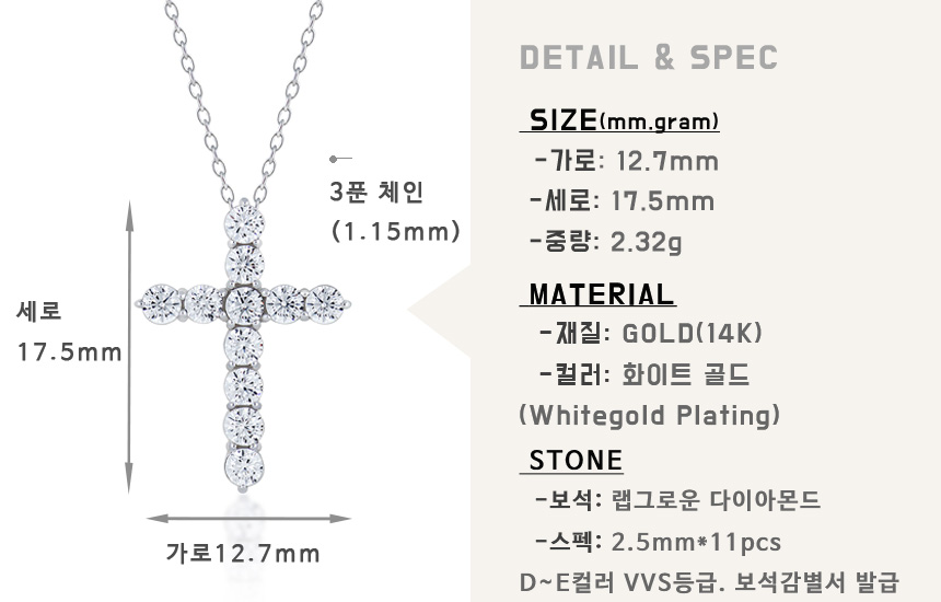 아래 - 디아망(L) 십자가 목걸이(1부 다이아)